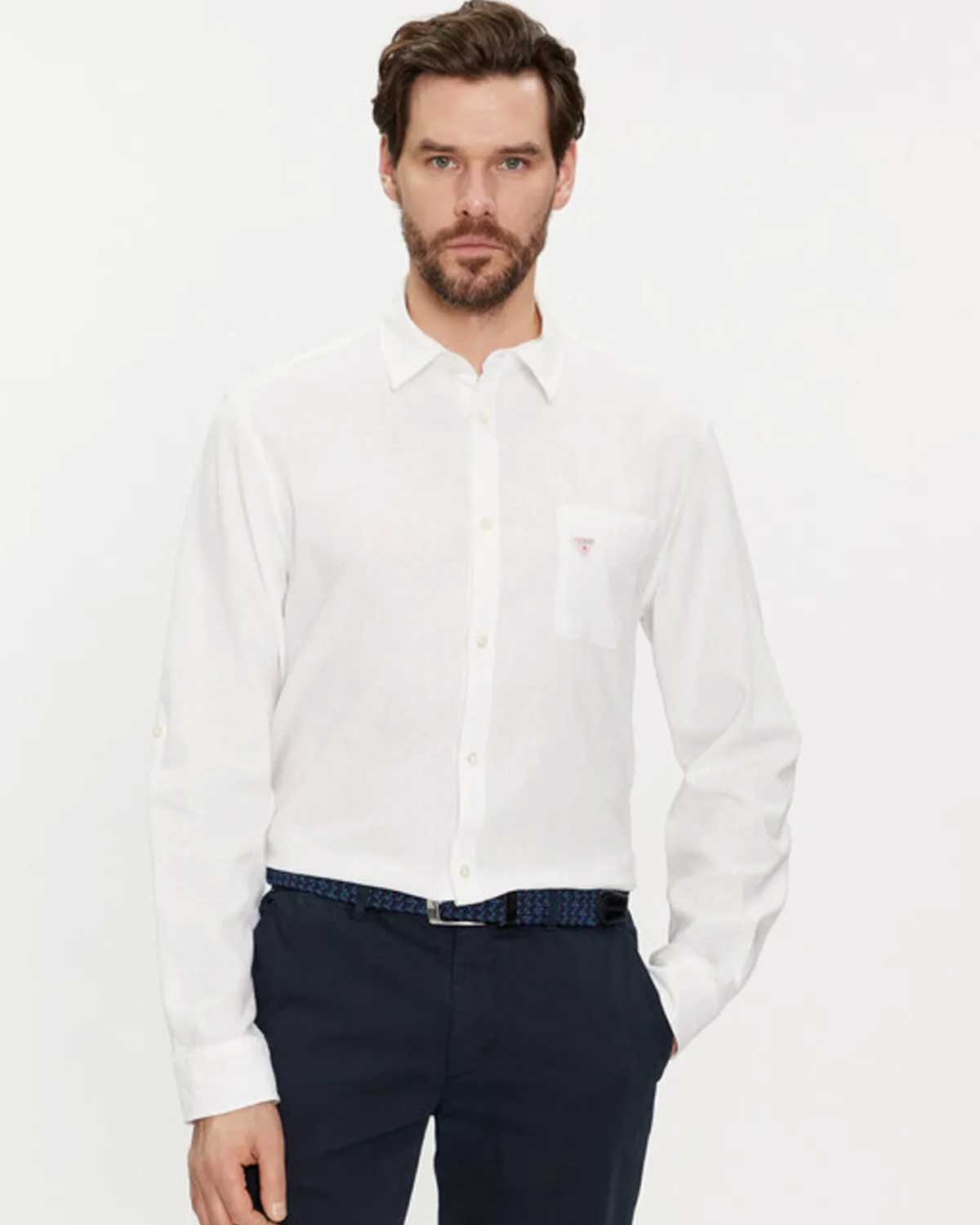 Gömleğin ön kısmında yer alan ince Guess logosu, minimalizm ve zarafetin güzel bir birleşimini yansıtır. Bu logo, gömleğe modern bir dokunuş katarken, markanın kalite ve stiline de dikkat çeker. İster işte, ister özel bir davette, ister günlük kullanımda, bu gömlek her ortamda fark yaratmanızı sağlar.