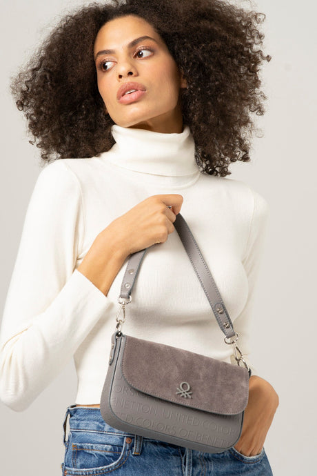 Benetton Manyetik Kapaklı Kadın Omuz Çantası Gri