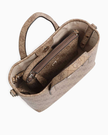 Guess Latona Mini Cüzdanlı Çıkarılabilir Uzatma Askılı El Çantası Latte Logo