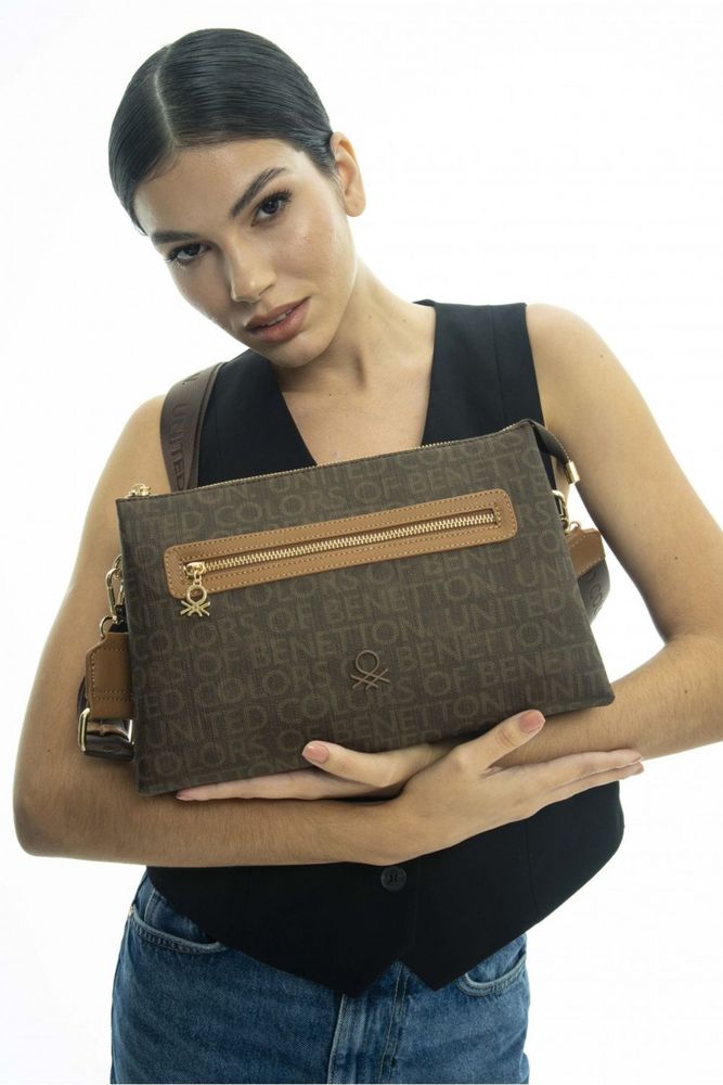Benetton Fermuar Detaylı Çapraz Askılı Çanta Kahve - Kahve / STD Ön sipariş verildi ve stoklara tekrar girdiğinde kargoya verilecek.