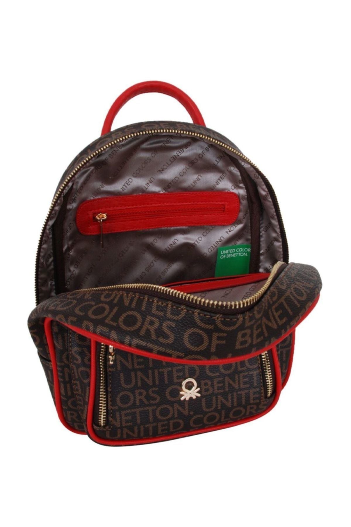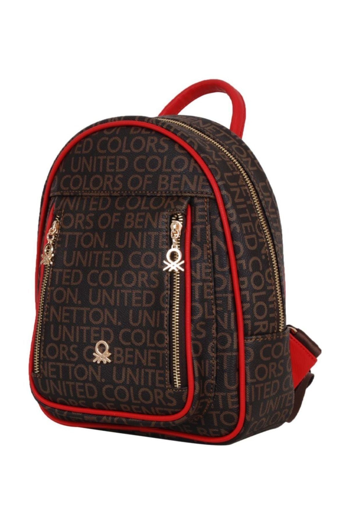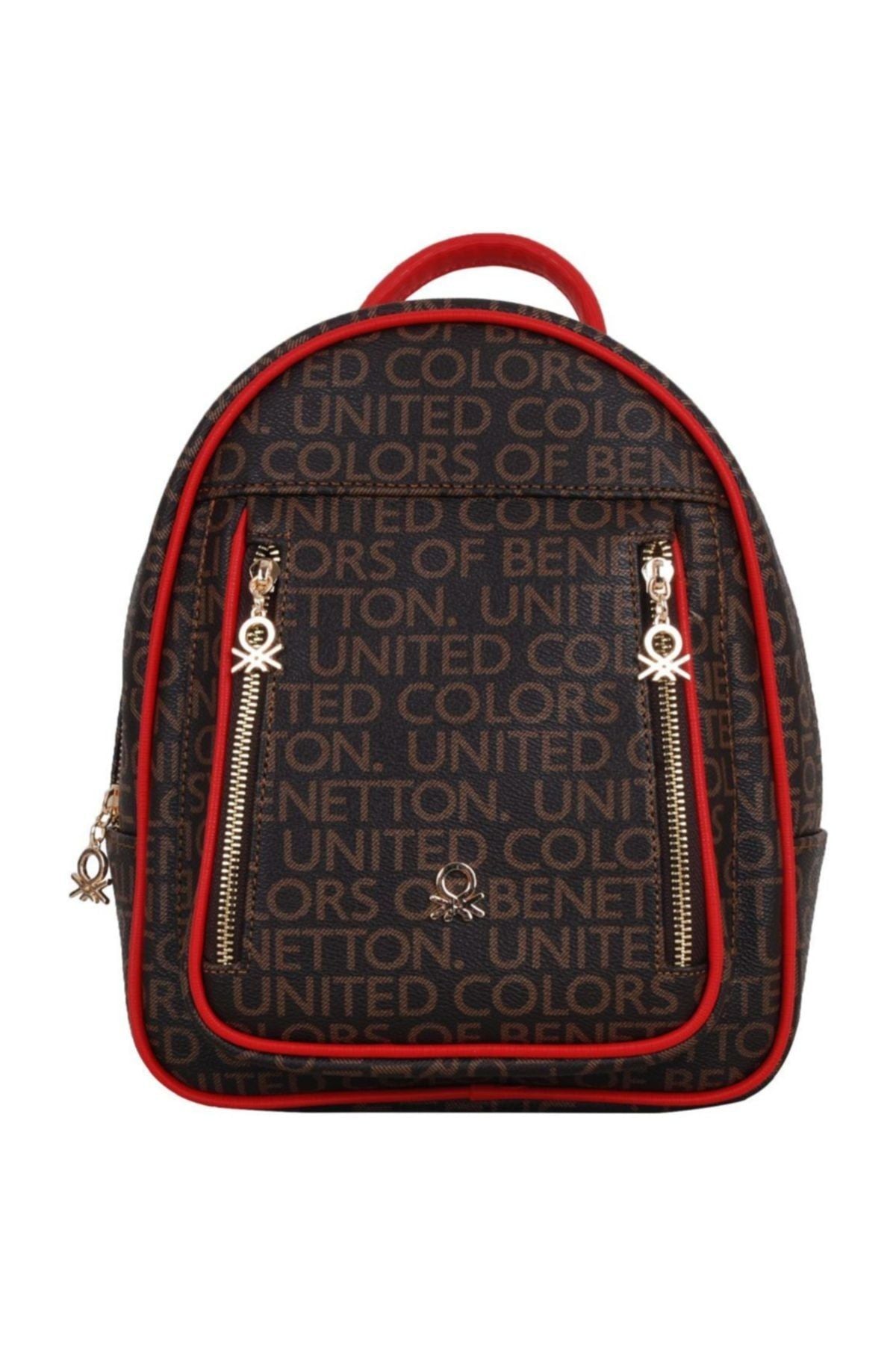 Benetton Çift Fermuar Detaylı Kadın Sırt Çantası Kahve - Kırmızı - Kahve - Kırmızı / STD Ön sipariş verildi ve stoklara tekrar girdiğinde kargoya verilecek.