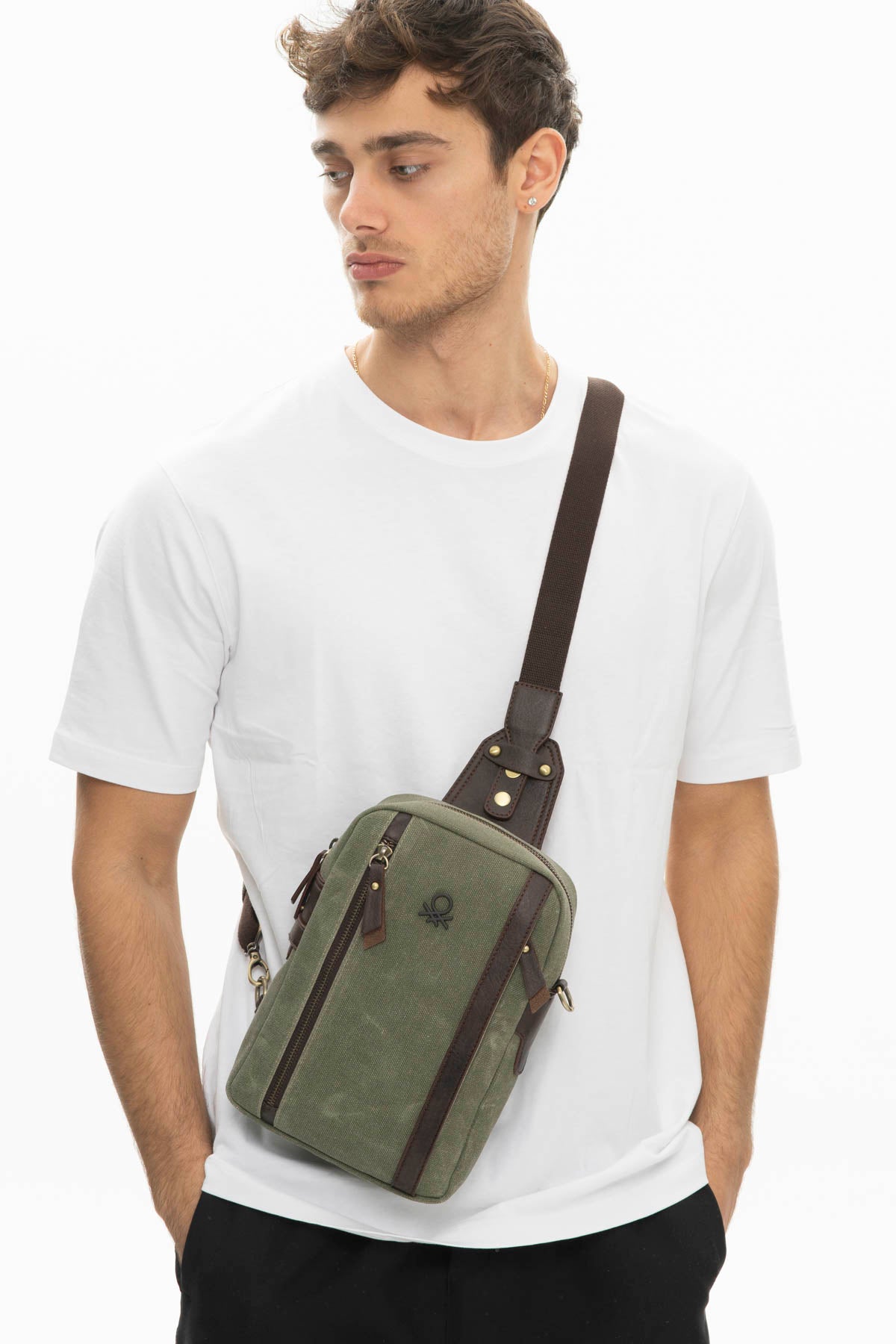 Benetton Fermuar Bölmeli Bel Çantası Haki