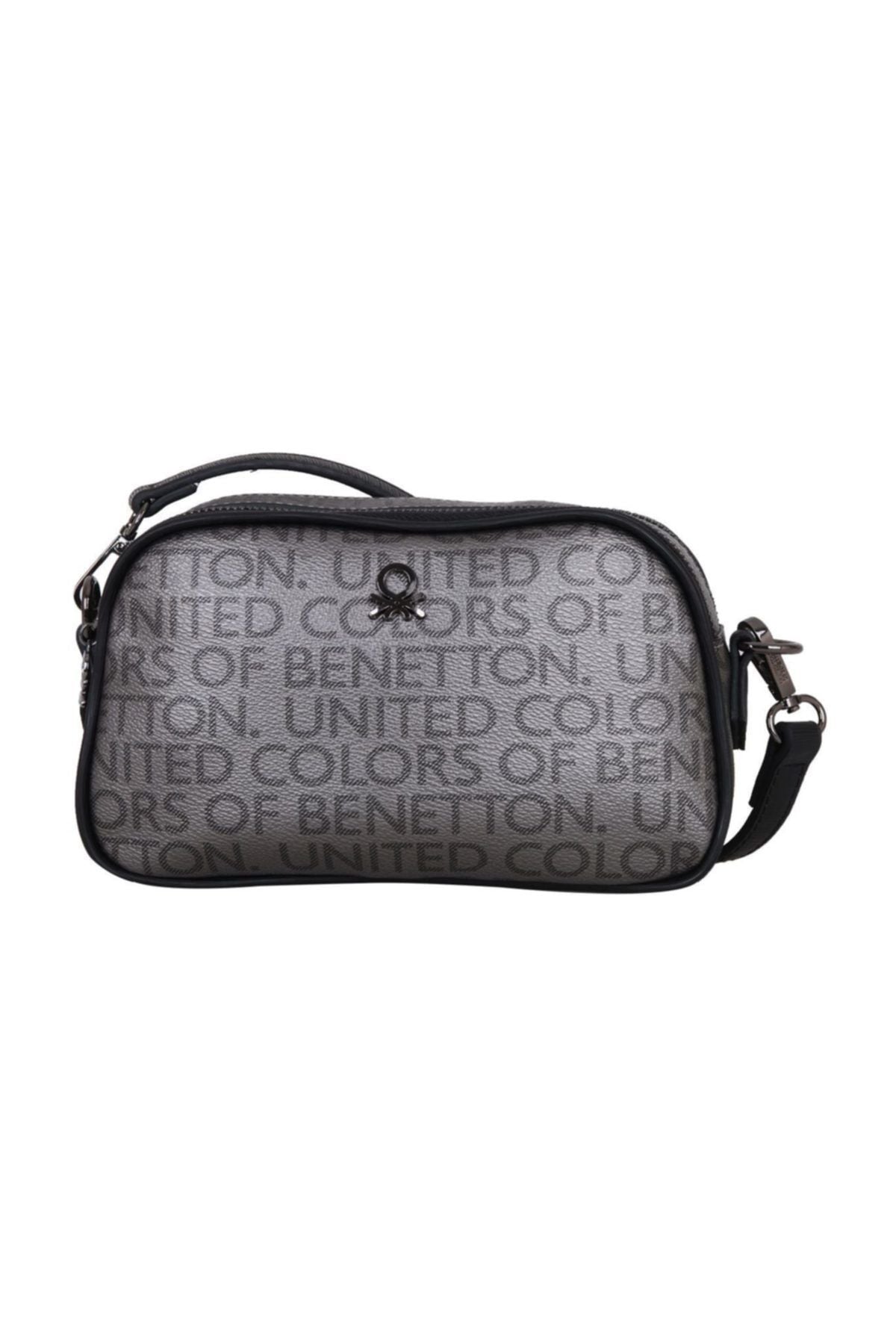 Benetton İki Bölmeli Mono Çapraz Askılı Kadın Çantası Platin - Siyah