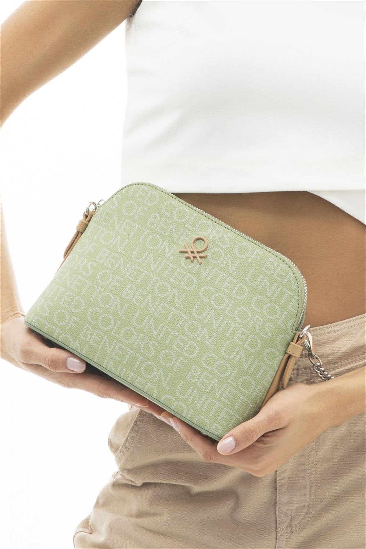 Benetton Zincir Detaylı Çapraz Askılı Çanta Yeşil - Açık Camel