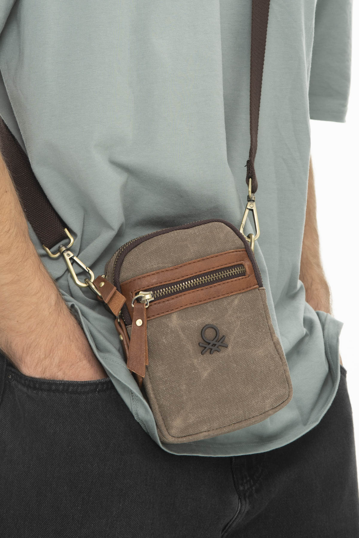 Benetton Fermuar Detaylı Çapraz Askılı Çanta Kahve
