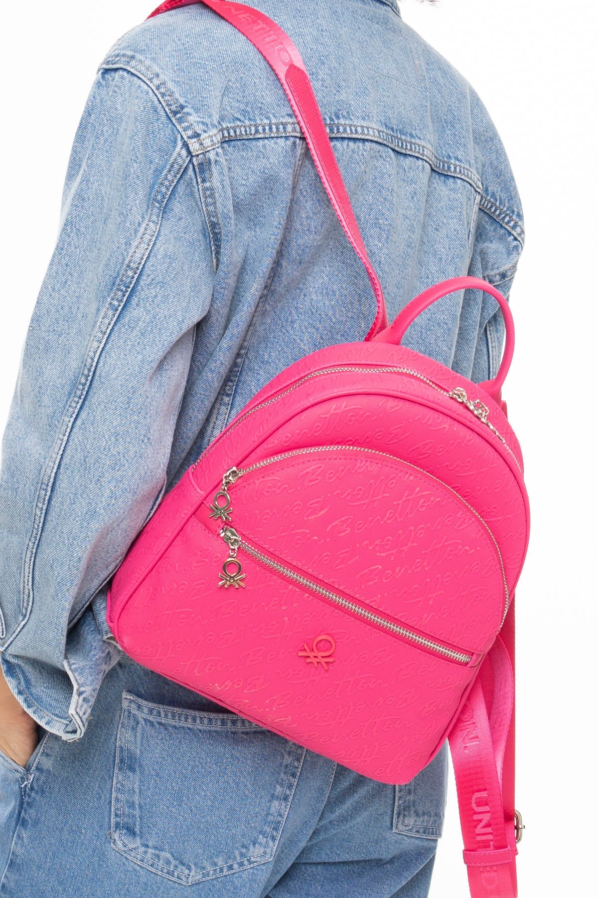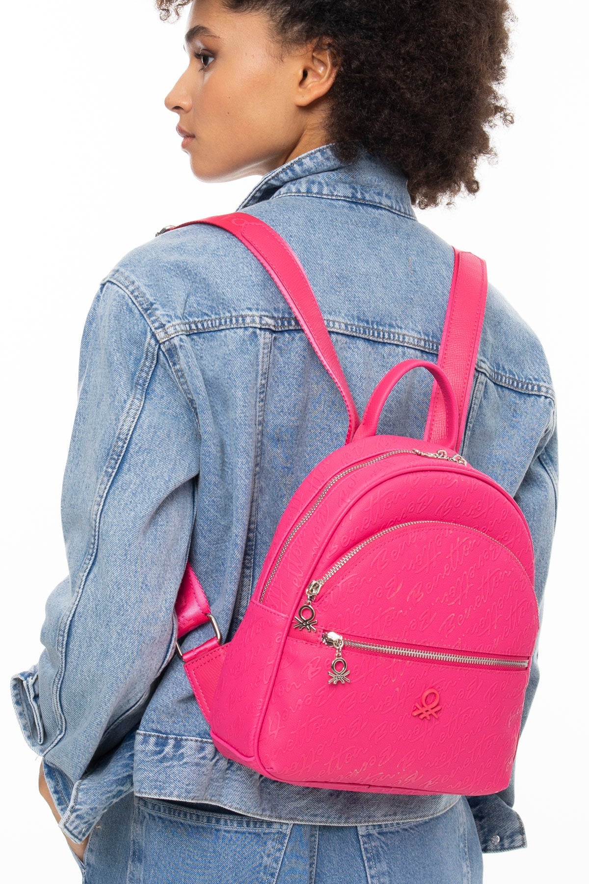 Benetton Monogram Baskılı Sırt Çantası Fuşya