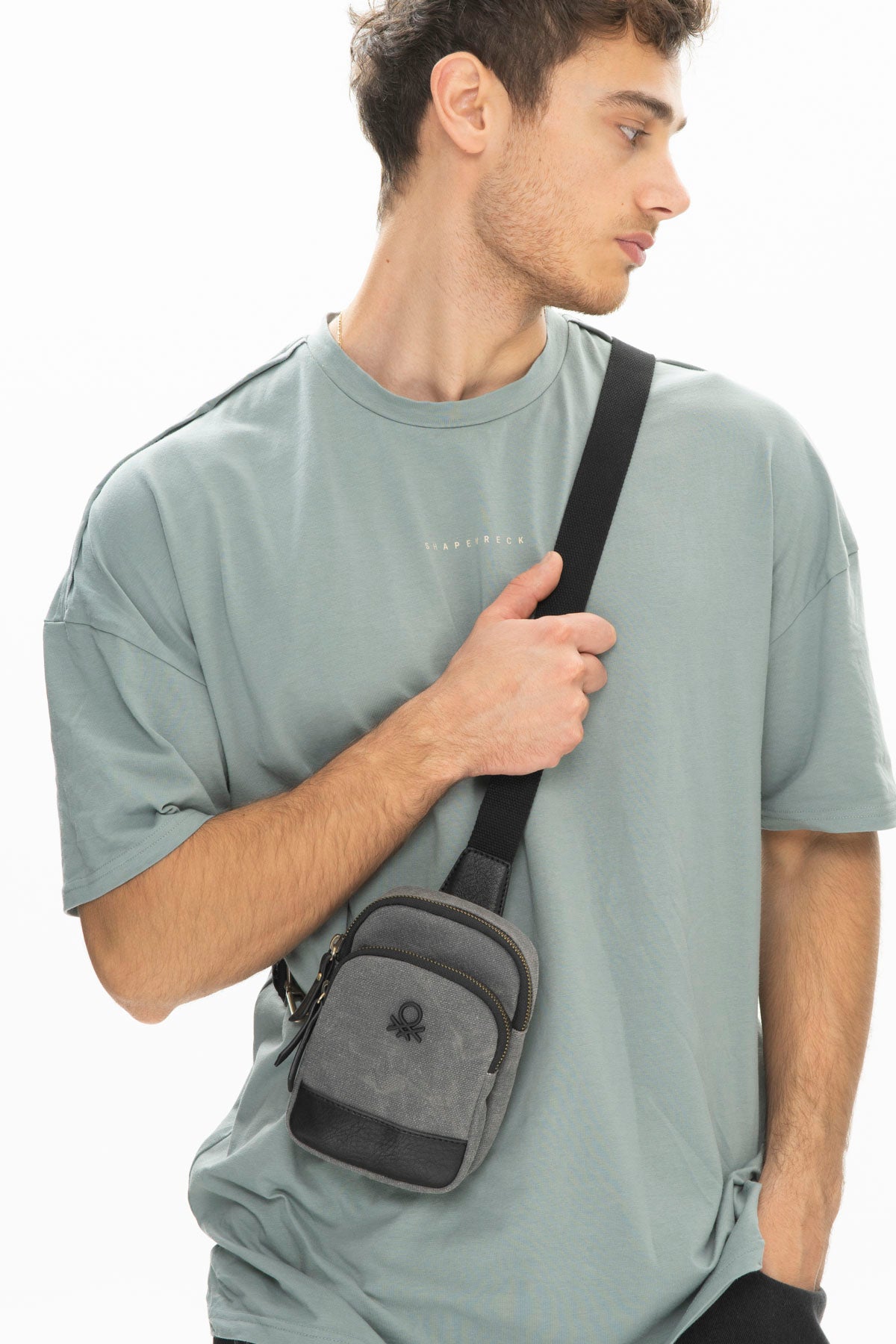 Benetton Logolu Çapraz Askılı Çanta Gri