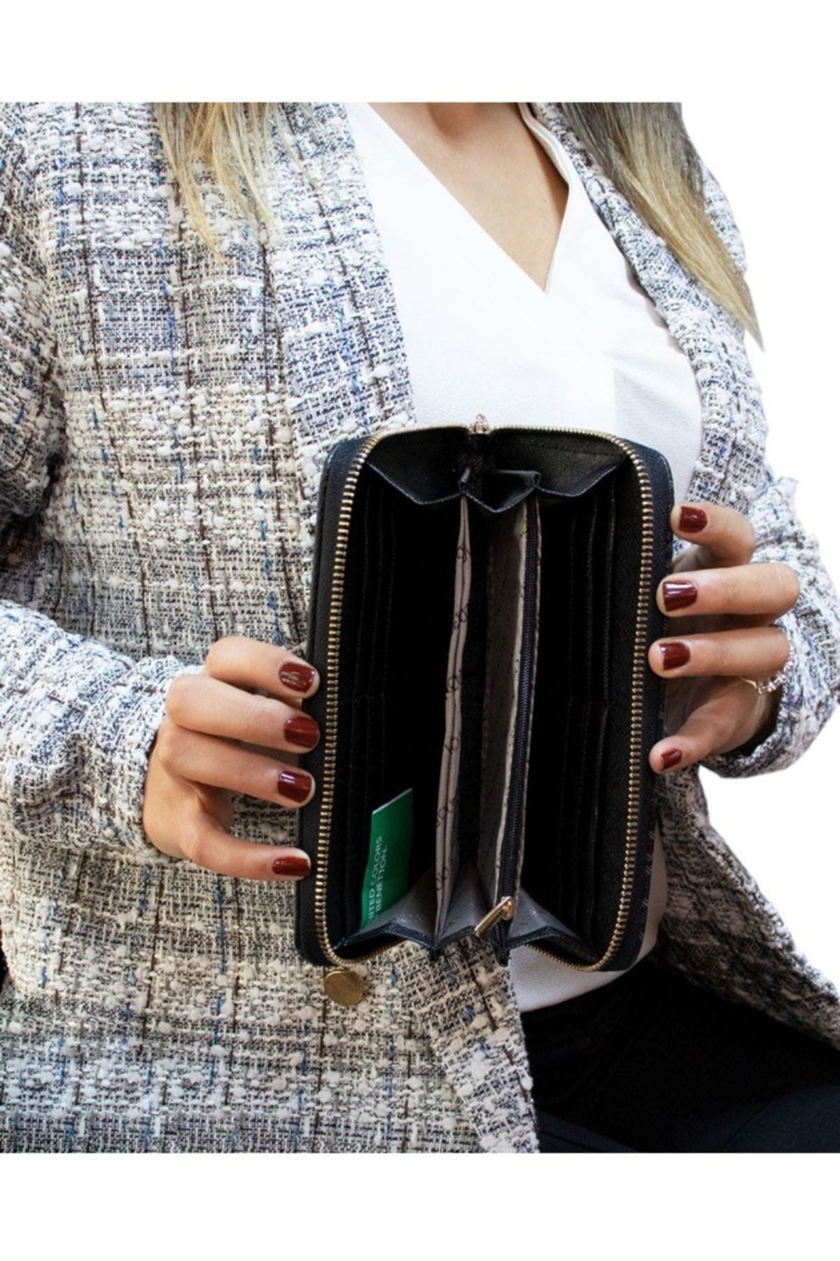 Benetton Logo Baskılı Large Kadın Cüzdanı Siyah - Siyah / STD Ön sipariş verildi ve stoklara tekrar girdiğinde kargoya verilecek.