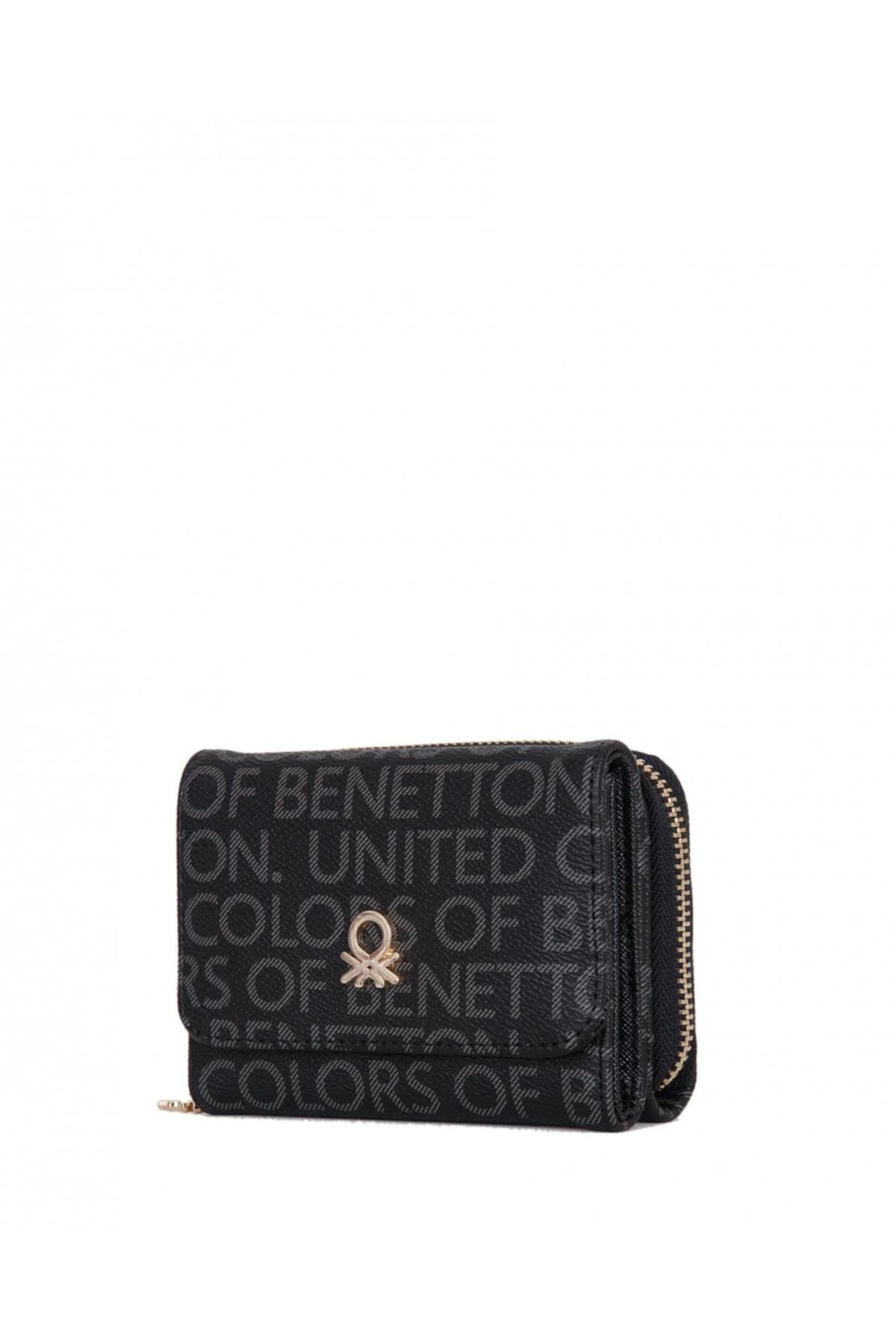 Benetton Logo Baskılı Mini Kadın Cüzdanı Siyah - Siyah / STD Ön sipariş verildi ve stoklara tekrar girdiğinde kargoya verilecek.
