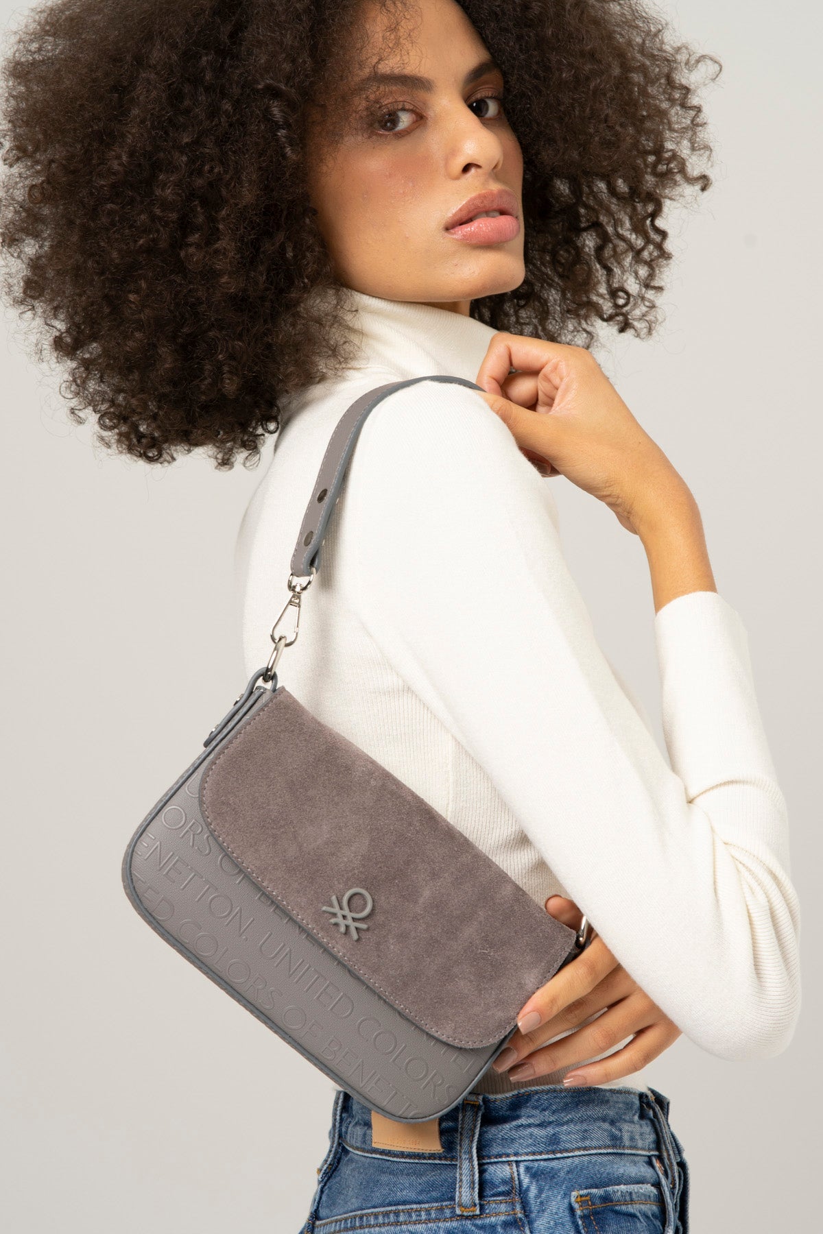 Benetton Manyetik Kapaklı Kadın Omuz Çantası Gri