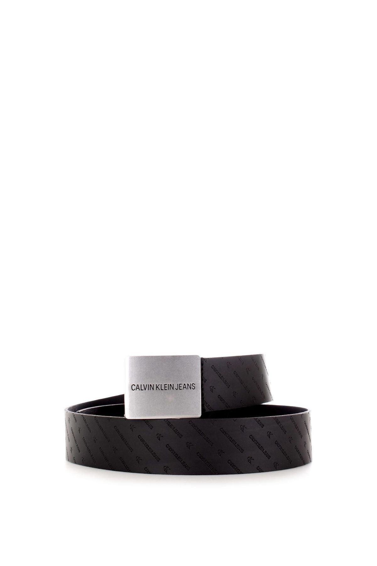 Calvin Klein 95cm 38 Inch Uniform Plaque Lth Erkek Kemer BLACK W/ DIAGONAL MONO PRINT