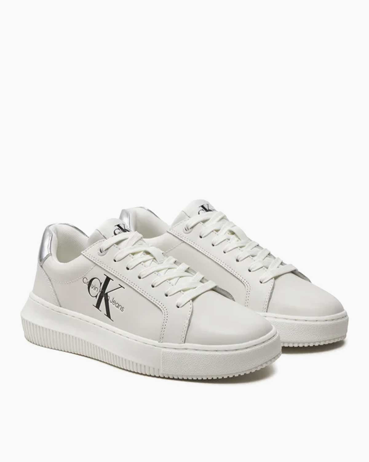 Calvin Klein Chunky Cupsole Laceup Lth Ml Mtl Kadın Sneaker Bright White/Silver - Bright White/Silver / 37 Ön sipariş verildi ve stoklara tekrar girdiğinde kargoya verilecek.