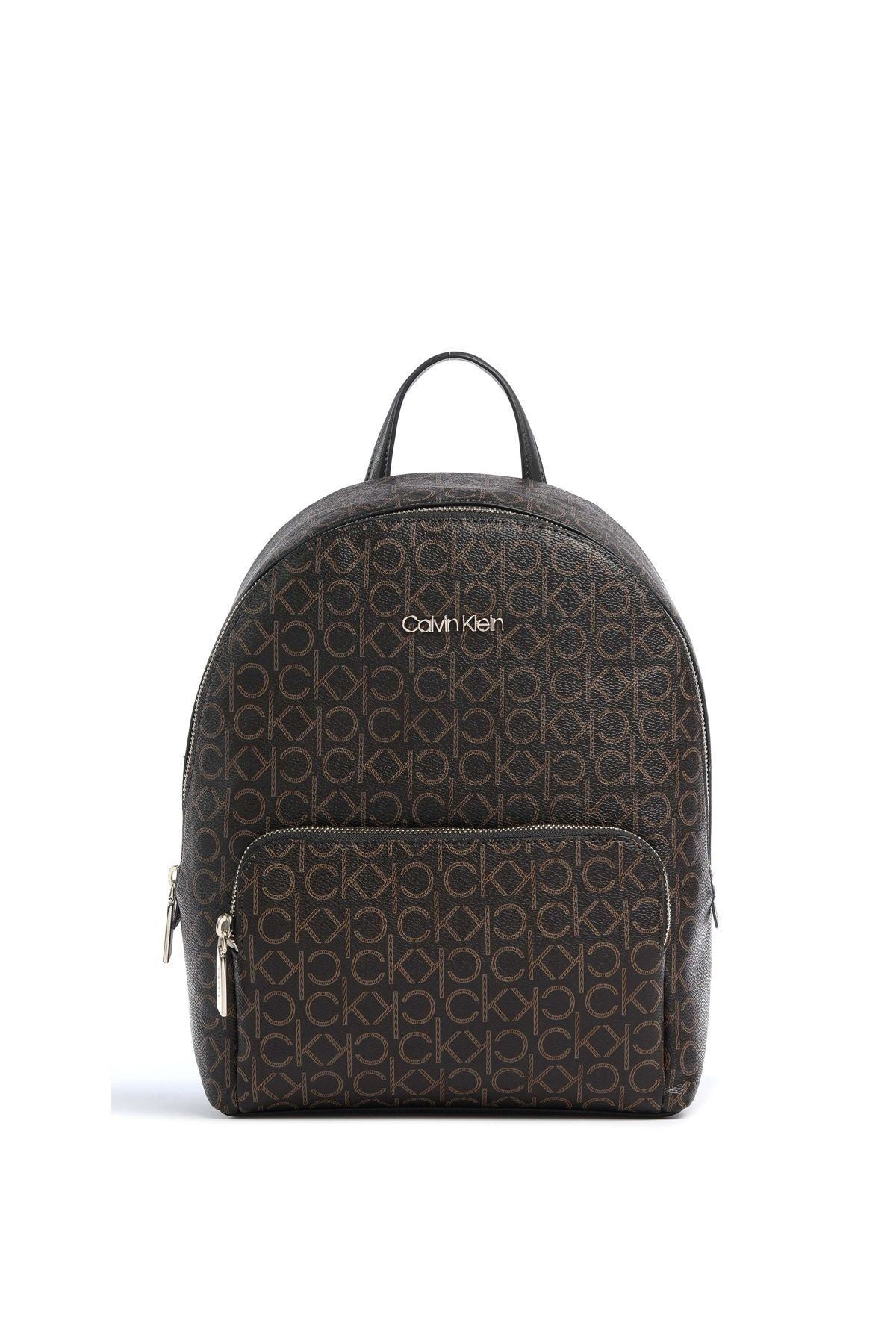 Calvin Klein Ck Monogram Baskılı Fermuarlı Kadın Sırt Çantası Brown Mono