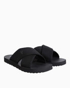 Tamamen geri dönüştürülmüş pamuk ve sürdürülebilir pamuk karışımından üretilen bu Triple Black renkli sandalet, şıklık ve doğa dostu materyalleri bir araya getiriyor. Çapraz bantlı modern tasarımı sayesinde ayağı kavrayarak konforlu bir kullanım sağlarken, kaymaz kauçuk tabanı güvenli bir yürüyüş deneyimi sunuyor.