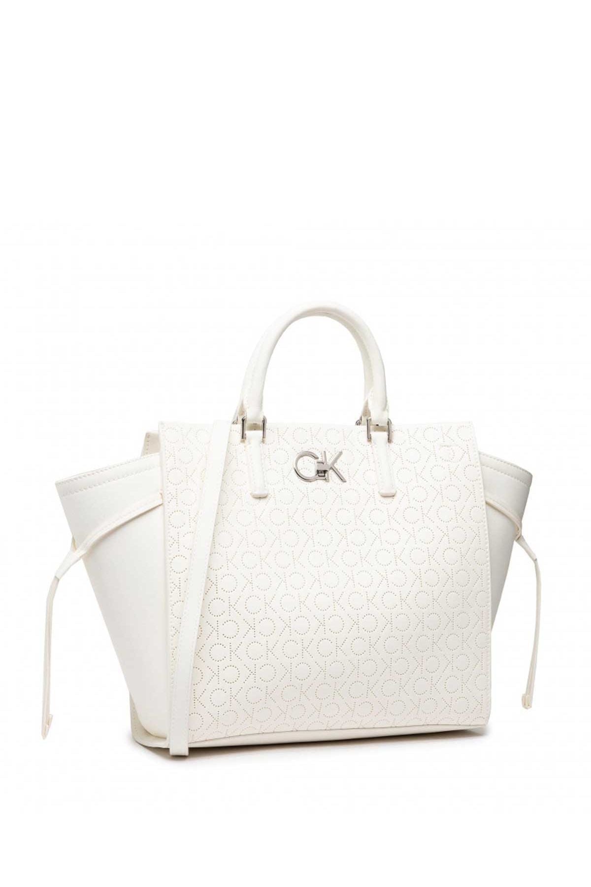 Calvin Klein Re-Lock Drawstring Tote Bag Perf Kadın Omuz Çantası Ck White