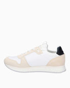 Calvin Klein Runner Sock Lace Up Runner Kadın Sneaker, sürdürülebilirliği ve modern şıklığı bir araya getiren benzersiz bir tasarımla karşınızda. Parlak beyaz, krem ve siyah tonlarıyla süet detaylı bu sneaker, her adımda rahatlık sunan köpük iç tabanlığı ve geri dönüştürülmüş polyester astarıyla çevre dostu bir tercih. Kauçuk dış tabanı, uzun ömürlü ve sağlam bir tutuş sağlarken, bilek manşetiyle ekstra konfor sunar.