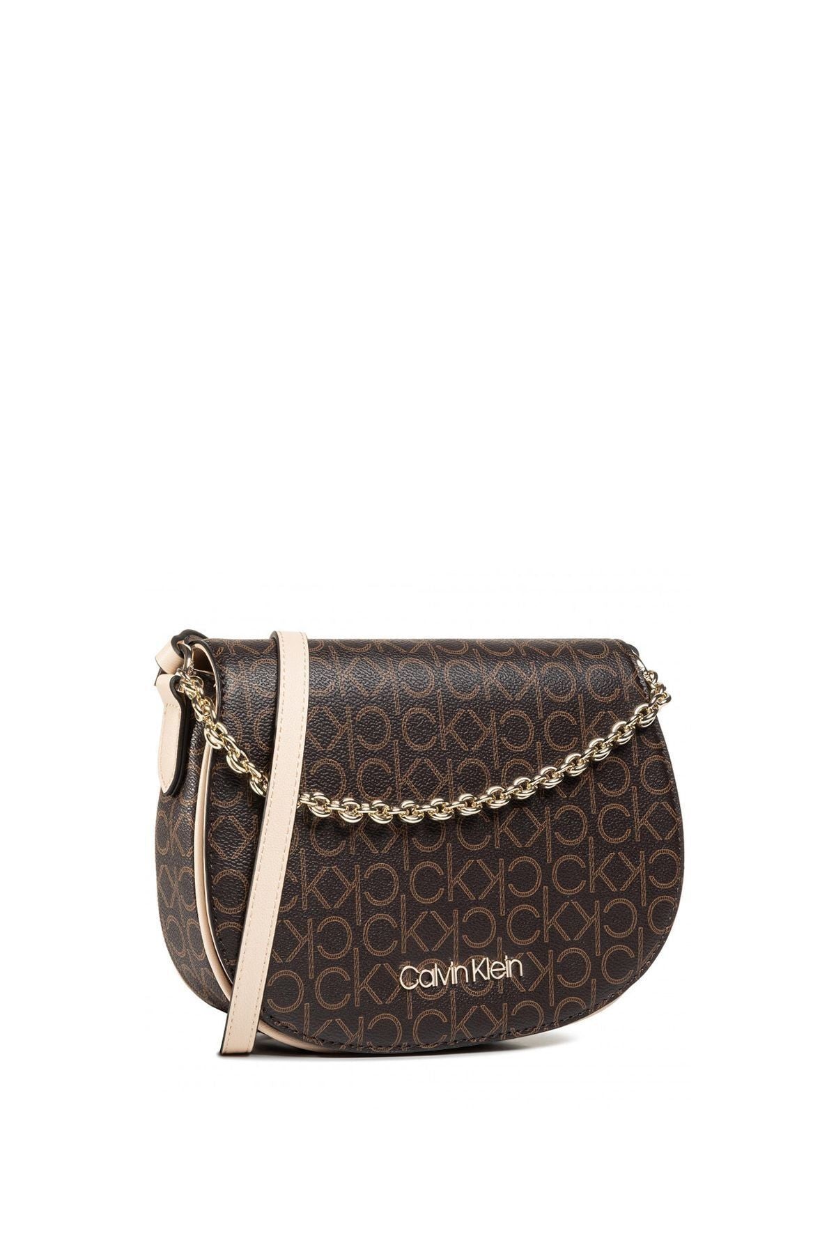 Calvin Klein Saddle Bag W/Chain Çapraz Askılı Kadın Çantası Brown Mono Mix