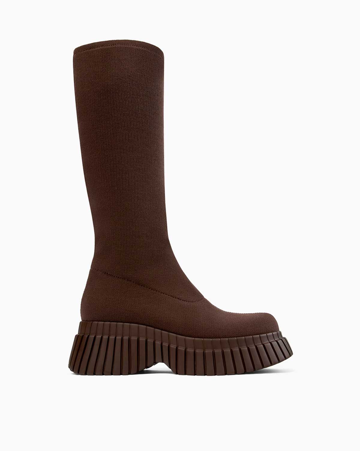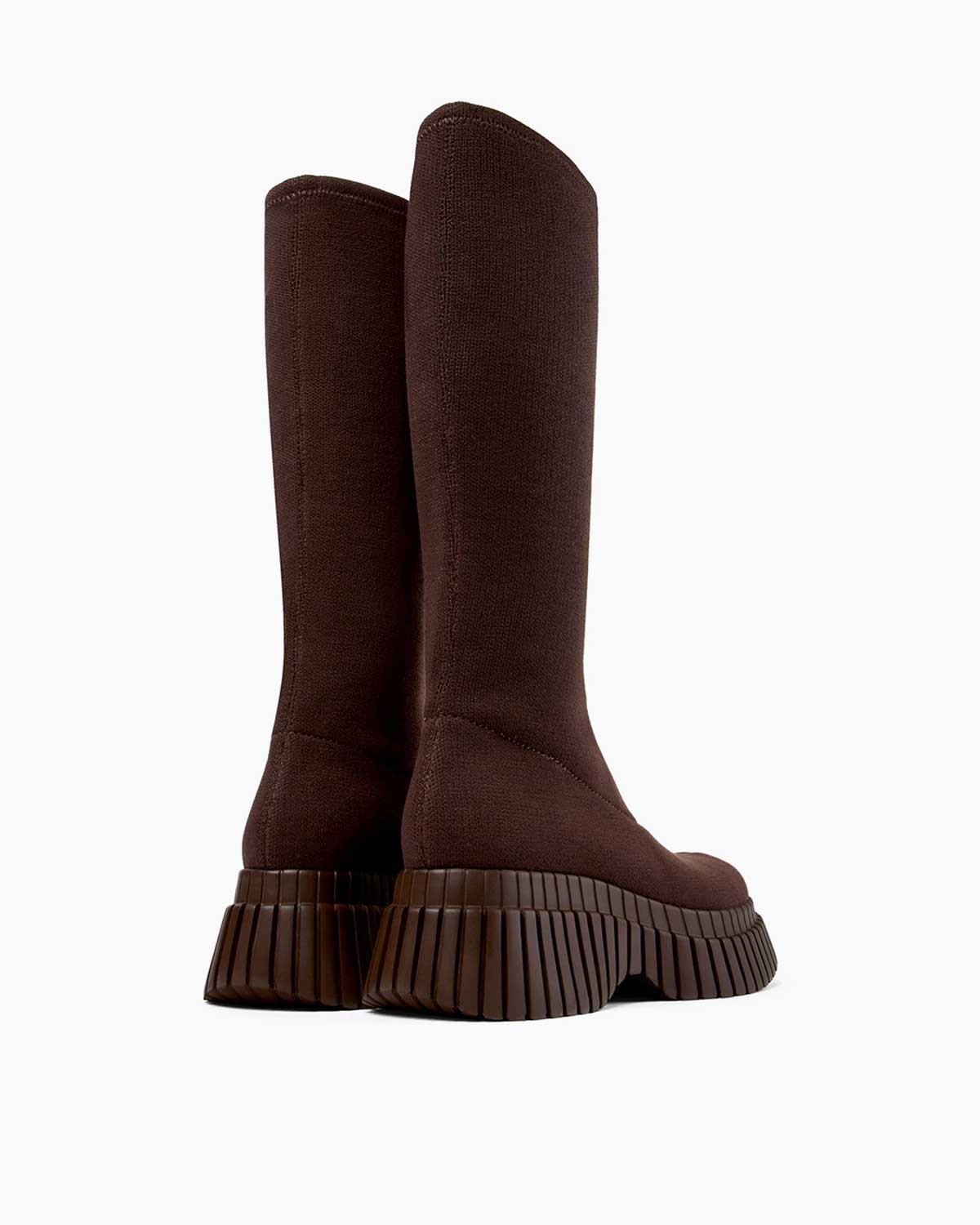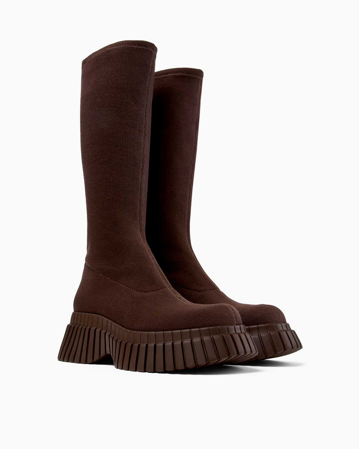 Camper BCN Chelsea Kumaş Uzun Çizme, koyu kahverengi tonuyla sofistike bir görünüm sunarken sürdürülebilir malzemeleri ve şık tasarımı bir araya getiriyor. Geri dönüştürülmüş polyester ve TENCEL™ Lyocell içeriği, çevreye duyarlılığı ve stil sahibi bir tasarımı buluşturuyor. Bu bot, hem şehrin ritmine uyum sağlayan modern bir tarza hem de rahat bir kullanım deneyimine sahip.