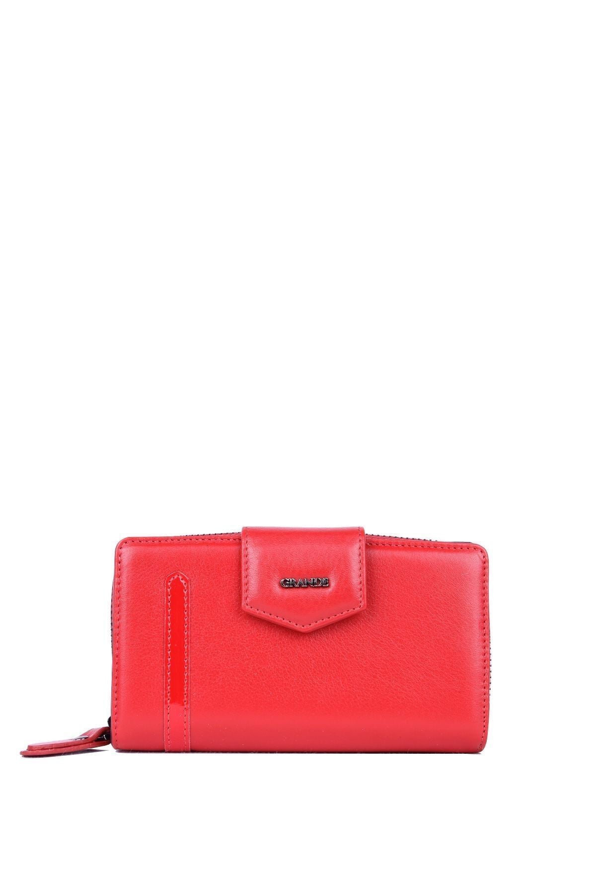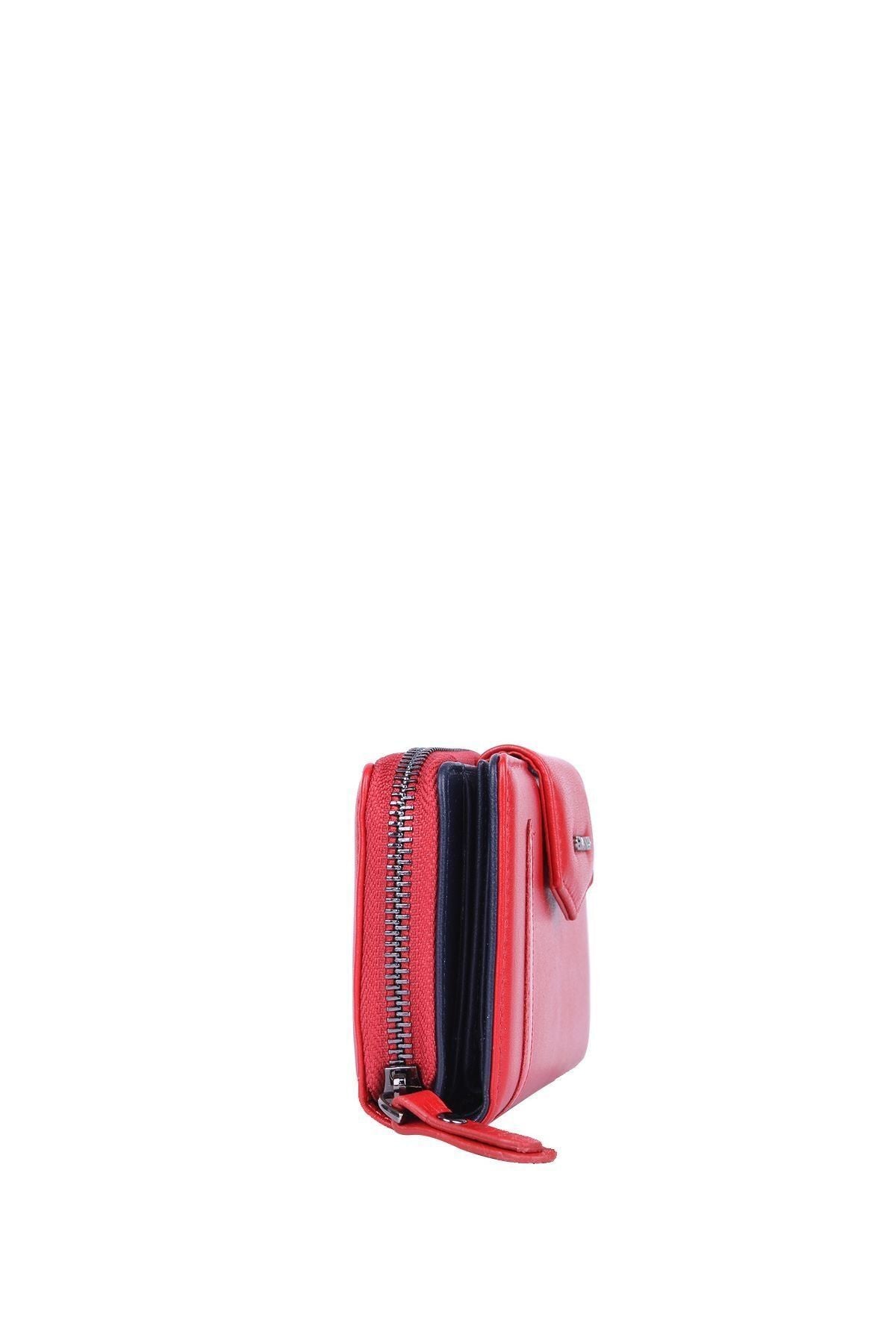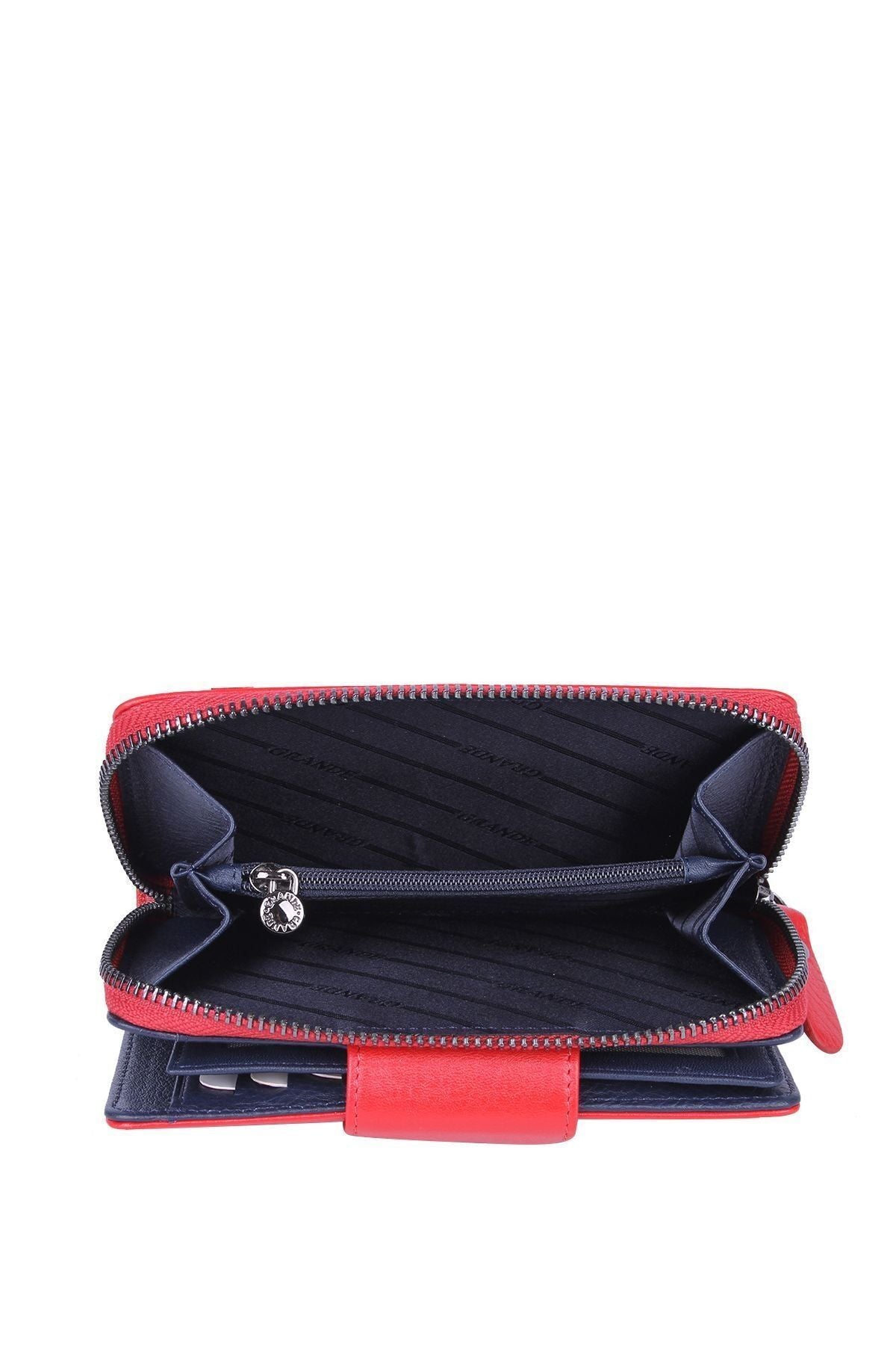 Grande 2 Küçük - 1 Büyük Şeffaf Bölmeli Kadın El Portföyü Kırmızı - Lacivert