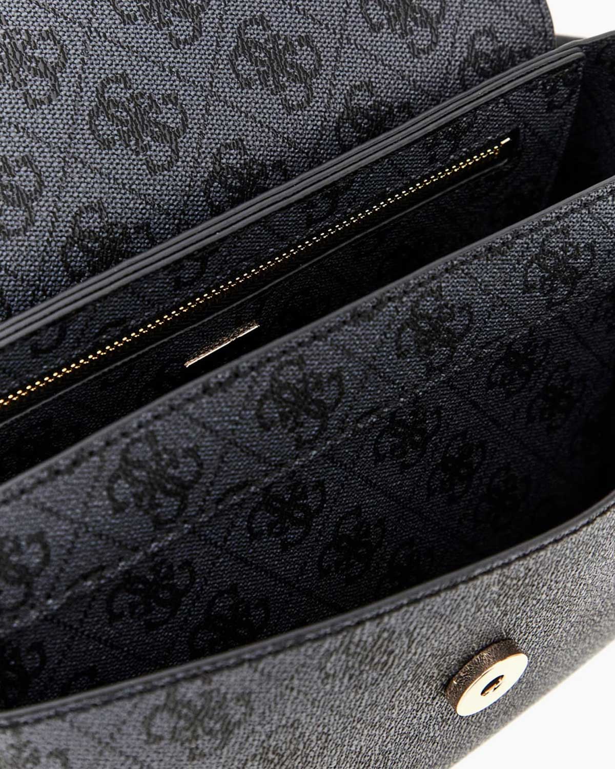 Kömür grisi rengi, sofistike ve güçlü bir duruş sergilerken, çantanın üzerini saran ikonik Guess monogram desenleri sadeliği dikkat çekiciliğe dönüştürüyor. Vegan deri yapısı ile sadece stilinizi değil, gezegeni de önemsediğinizi yansıtıyor.