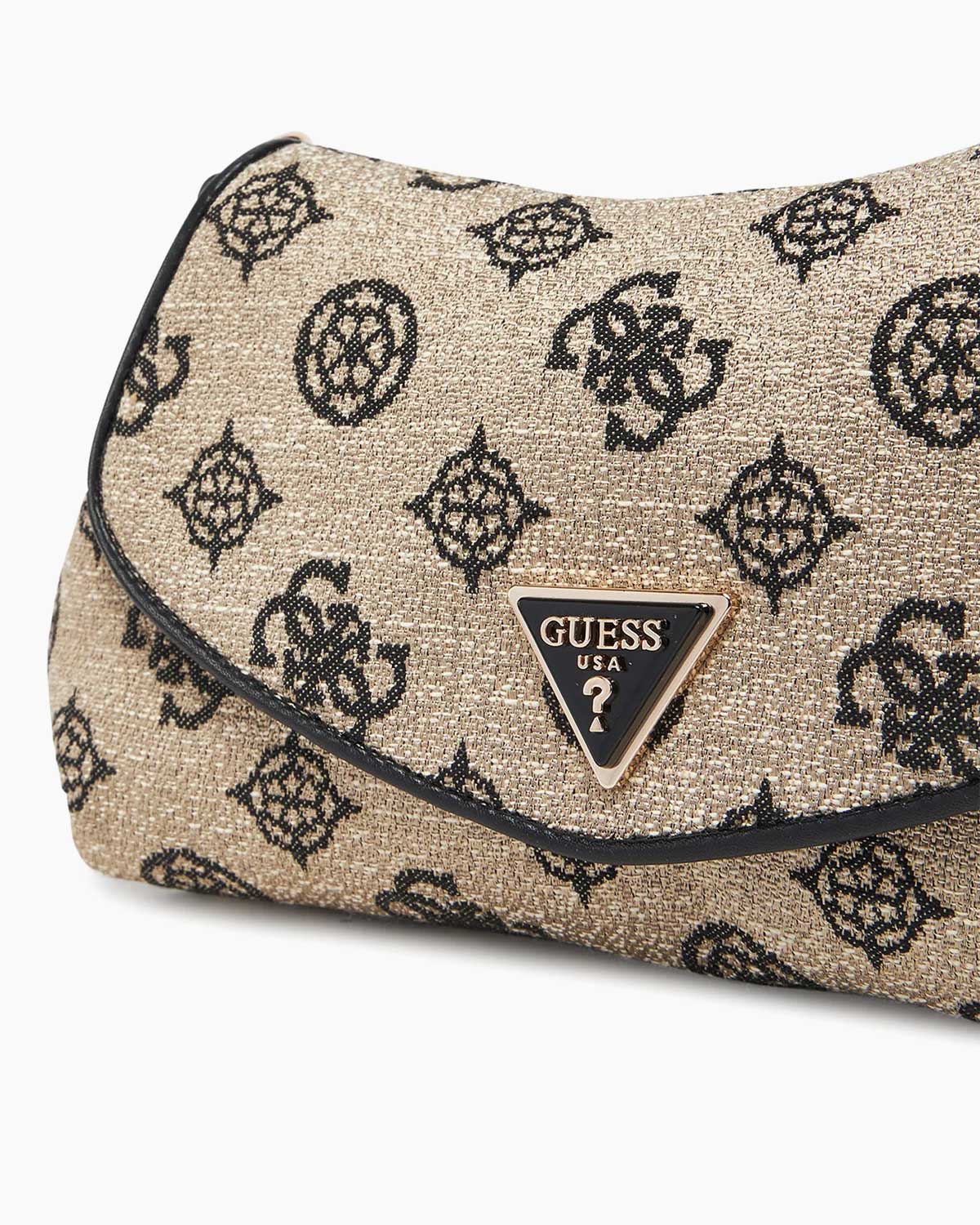 Bej tonlar üzerine işlenen siyah logo detayları ve klasik üçgen Guess logosu, bu çantayı şehirli kadının vazgeçilmez parçası hâline getiriyor.