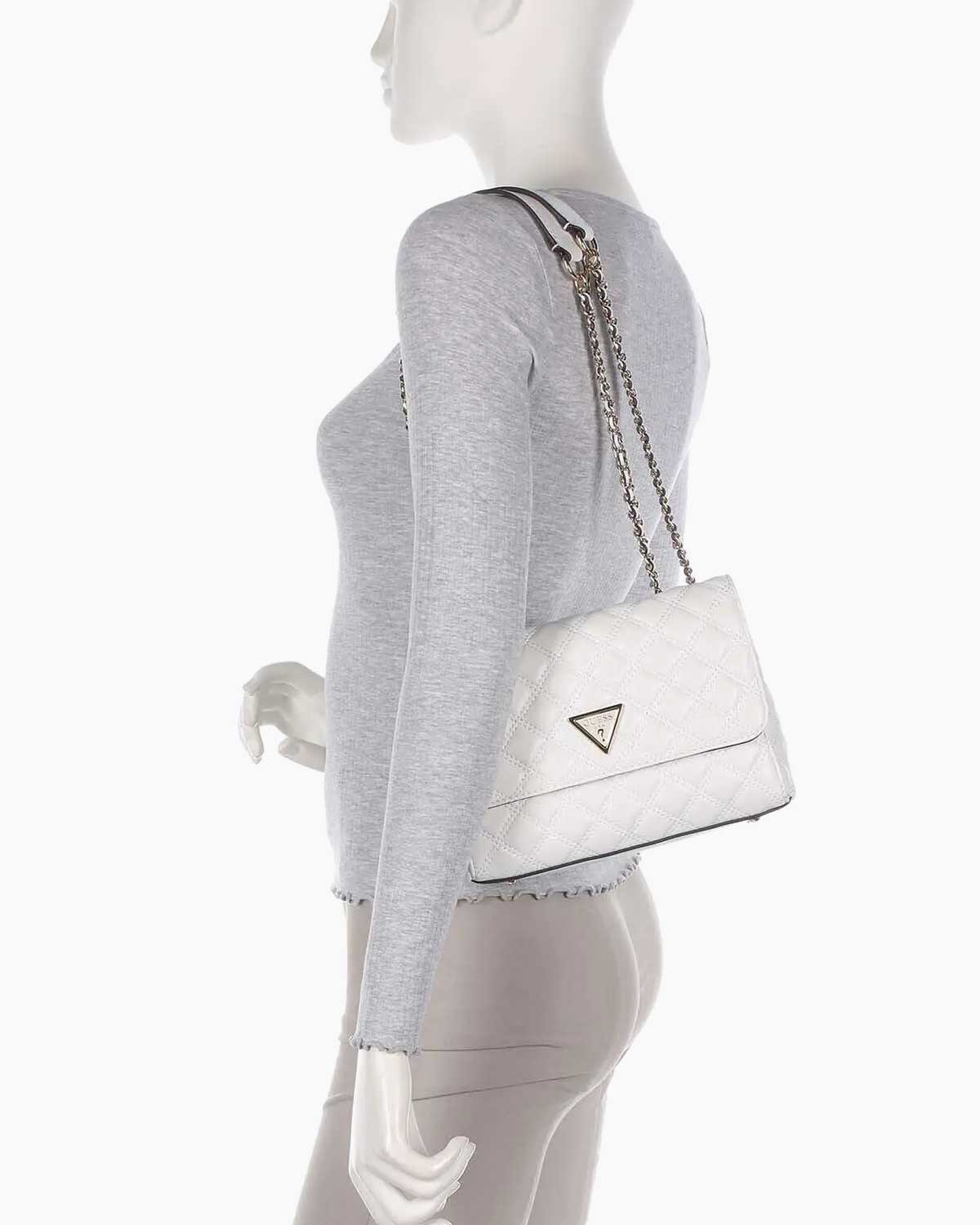 Guess Giully Compartment Zincir Detaylı Omuz Çantası - White / Standart Ön sipariş verildi ve stoklara tekrar girdiğinde kargoya verilecek.