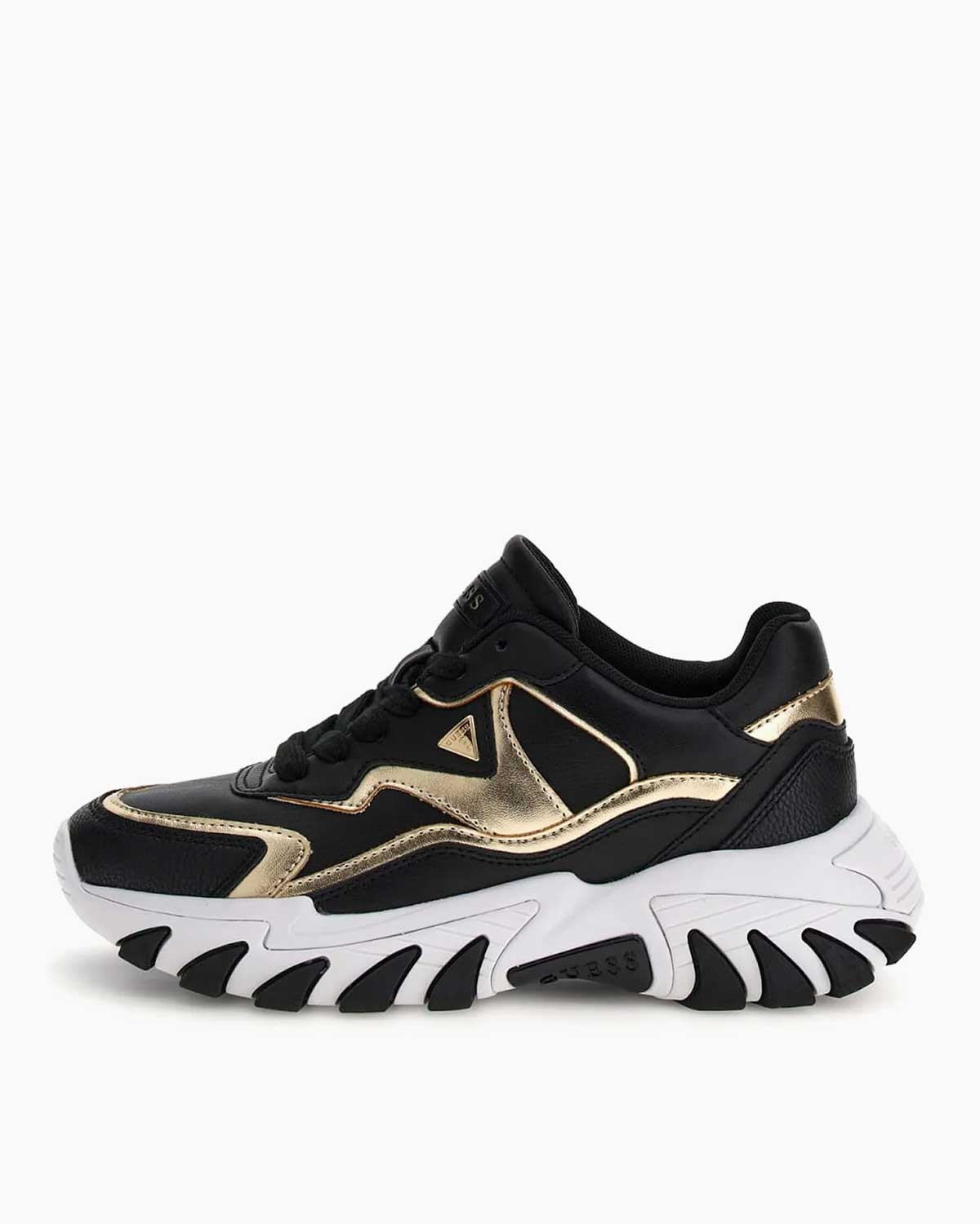5,8 cm’lik taban yüksekliği, hem estetik bir görünüm sunar hem de yürüyüş esnasında ekstra destek sağlar. Bağcıklı kapama, ayakkabının ayakla mükemmel bir şekilde uyum sağlamasına yardımcı olurken, yanda bulunan üçgen logo, Guess markasının stilini ve kalitesini vurgular.