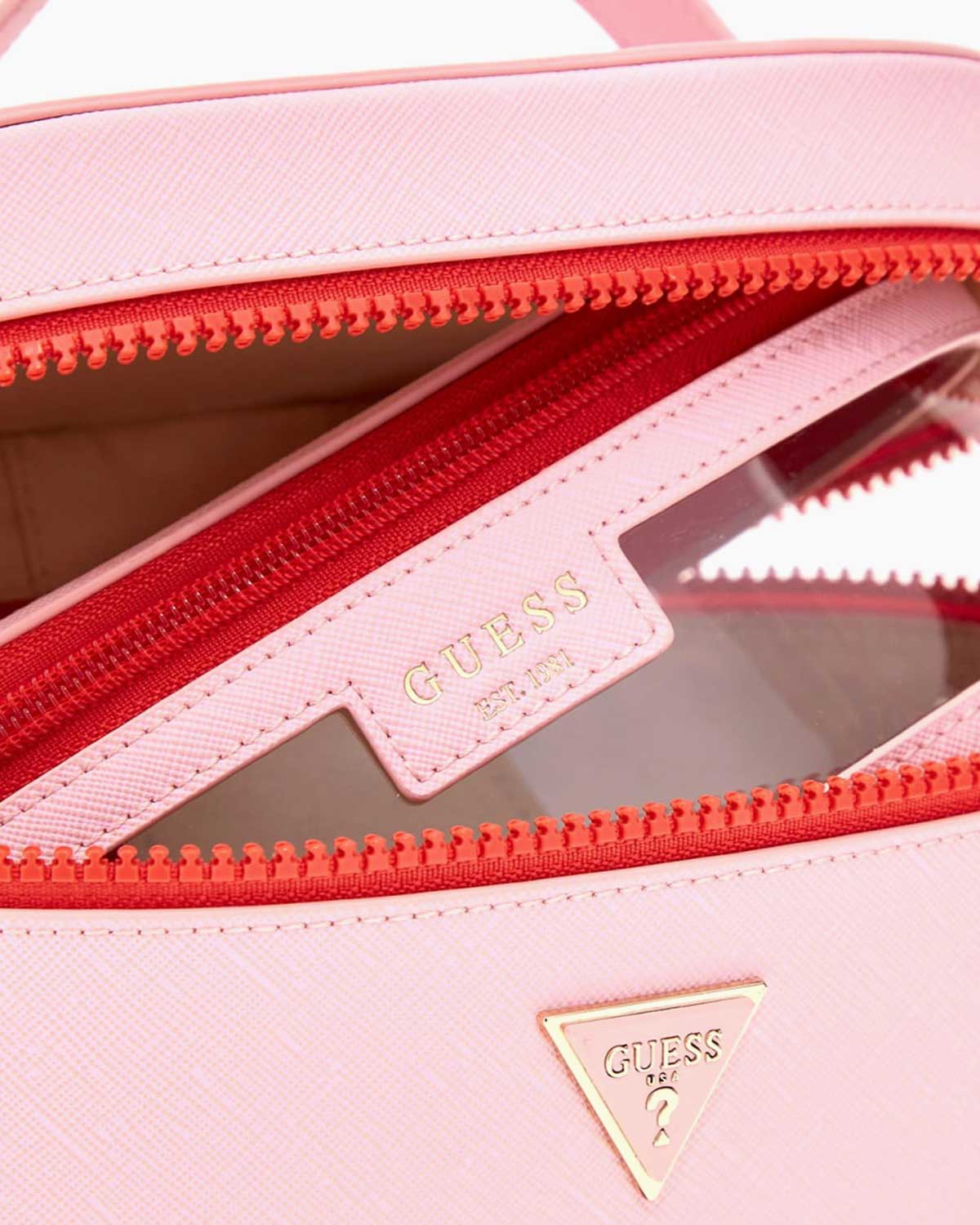 Guess Satchel Tote Logolu Makyaj Çantası Pink Multi