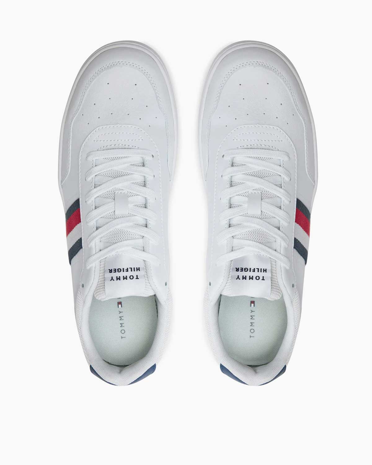 Tommy Hilfiger Basket Core Mid Top Sneakers, beyaz rengin klasik cazibesini ve mid top tasarımının sunduğu konforu bir araya getirerek, modern bir şıklık sunuyor.