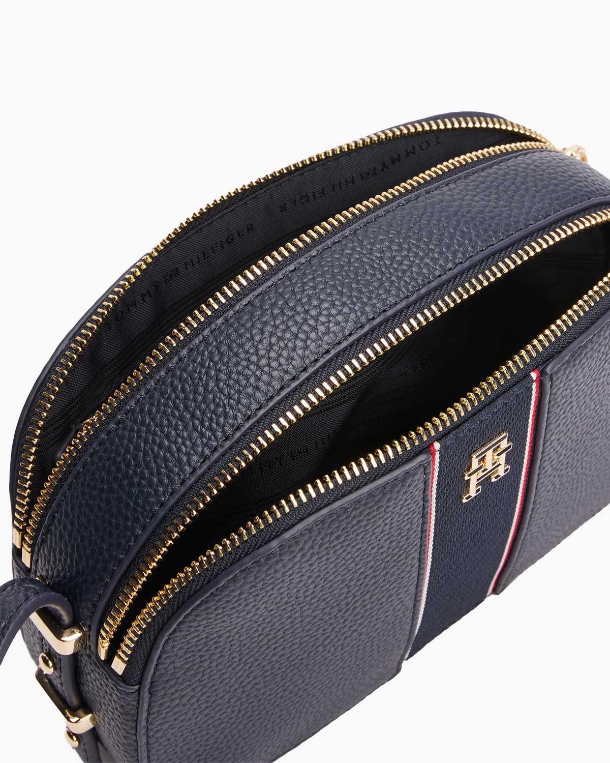 • İmza Tommy Hilfiger şerit detayları (lacivert, kırmızı ve beyaz)