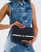 U.S. Polo Assn. Gold Logo Detaylı Ayarlanabilir Çapraz Askılı Çanta, markanın klasik renk paletini zamansız bir tasarımla buluşturuyor. Lacivertin asaleti, kırmızının canlılığı ve beyazın şıklığı ile hem sportif hem de zarif bir duruş sergiliyor.